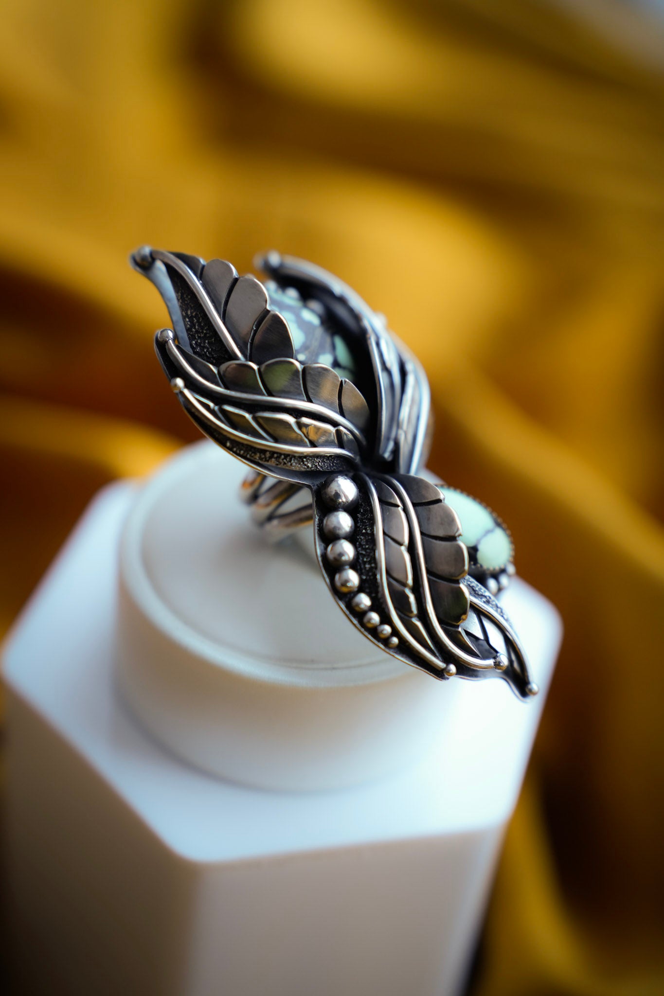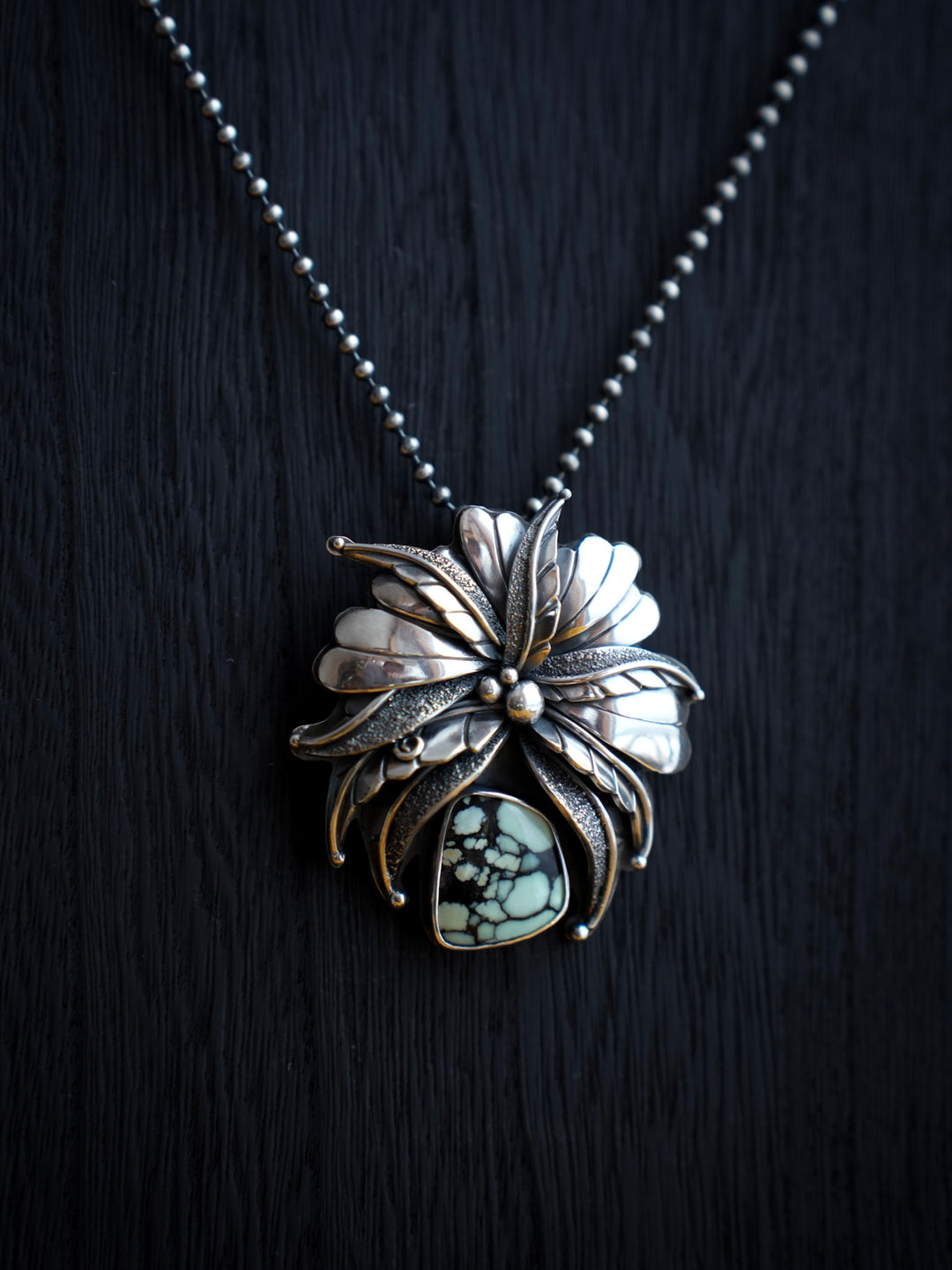 These stones came from a dear friend - a lapidary artist who freeform cuts whatever the rough whispers to her. And I build around whatever shape lands in my hands. It's a dance. Her stones, my torch. No plans, no templates - just trust in the stone and where it wants to go. When these Desert Bloom Variscite pieces arrived, we were on the same wavelength entirely.