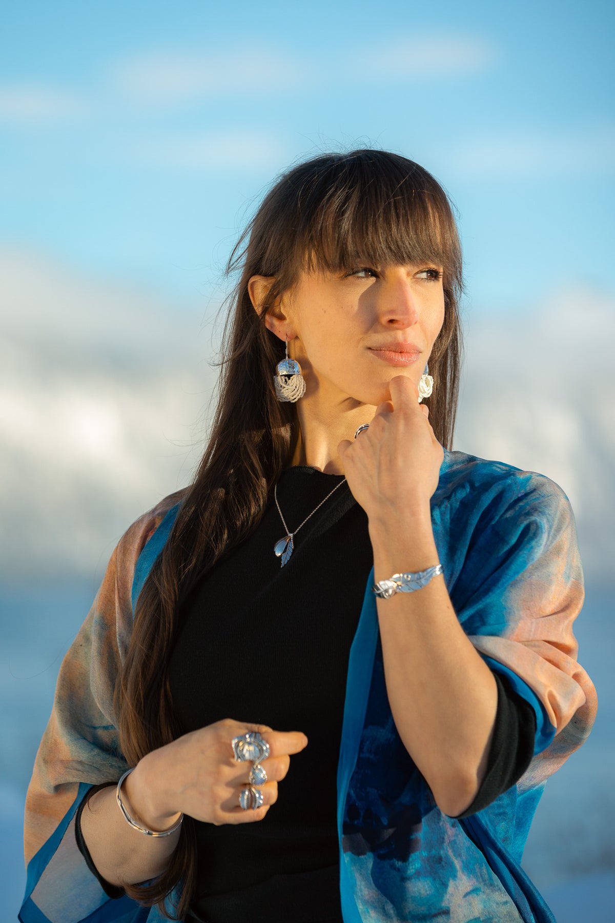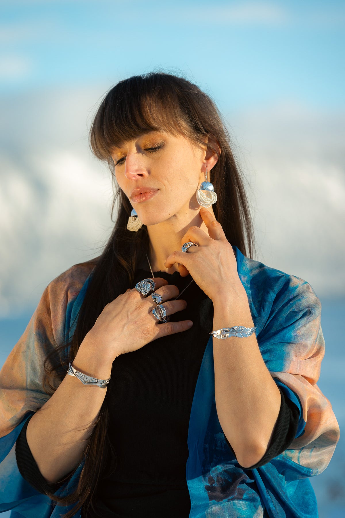 White, a color associated with purity, clarity, and new beginnings, combines with sterling silver's natural amplifying properties to create powerful talismans for mental clarity and fresh perspective. As you wear these lightweight yet striking earrings, they serve as wearable celebrations of Southeast Alaska's ice-carved landscapes—each pair unique, just as no two snowflakes are exactly alike. These versatile statement pieces bring a touch of winter's elegant magic to casual daywear and evening ensembles.