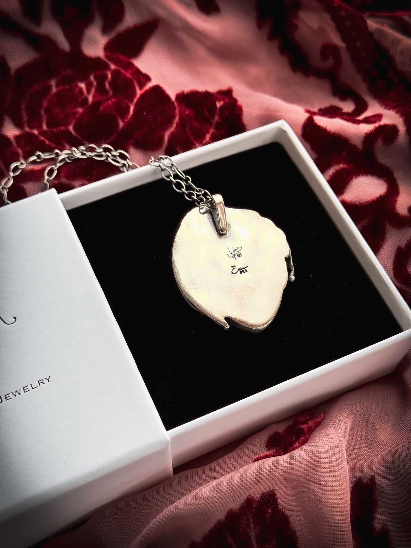 The intricate sterling silver botanical frame cradles this sacred stone like protective foliage around a desert spring, each leaf detailed with rain-kissed textures that catch and hold light like morning dewdrops. The secure setting ensures this heirloom piece will be your trusted companion through seasons of drought and abundance alike, growing more meaningful with each story it helps you write.