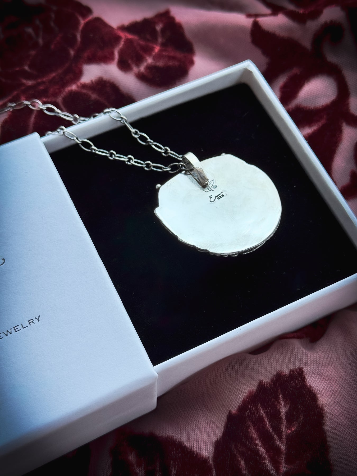 The elaborate sterling silver botanical setting blooms with rain-kissed leaves that seem to breathe with reverence, each detail lovingly crafted to mirror the sacred grove where your inner temple stands. The secure bail ensures this heirloom-quality piece will accompany you through every season of spiritual growth, becoming more precious with each moment of quiet knowing it witnesses.