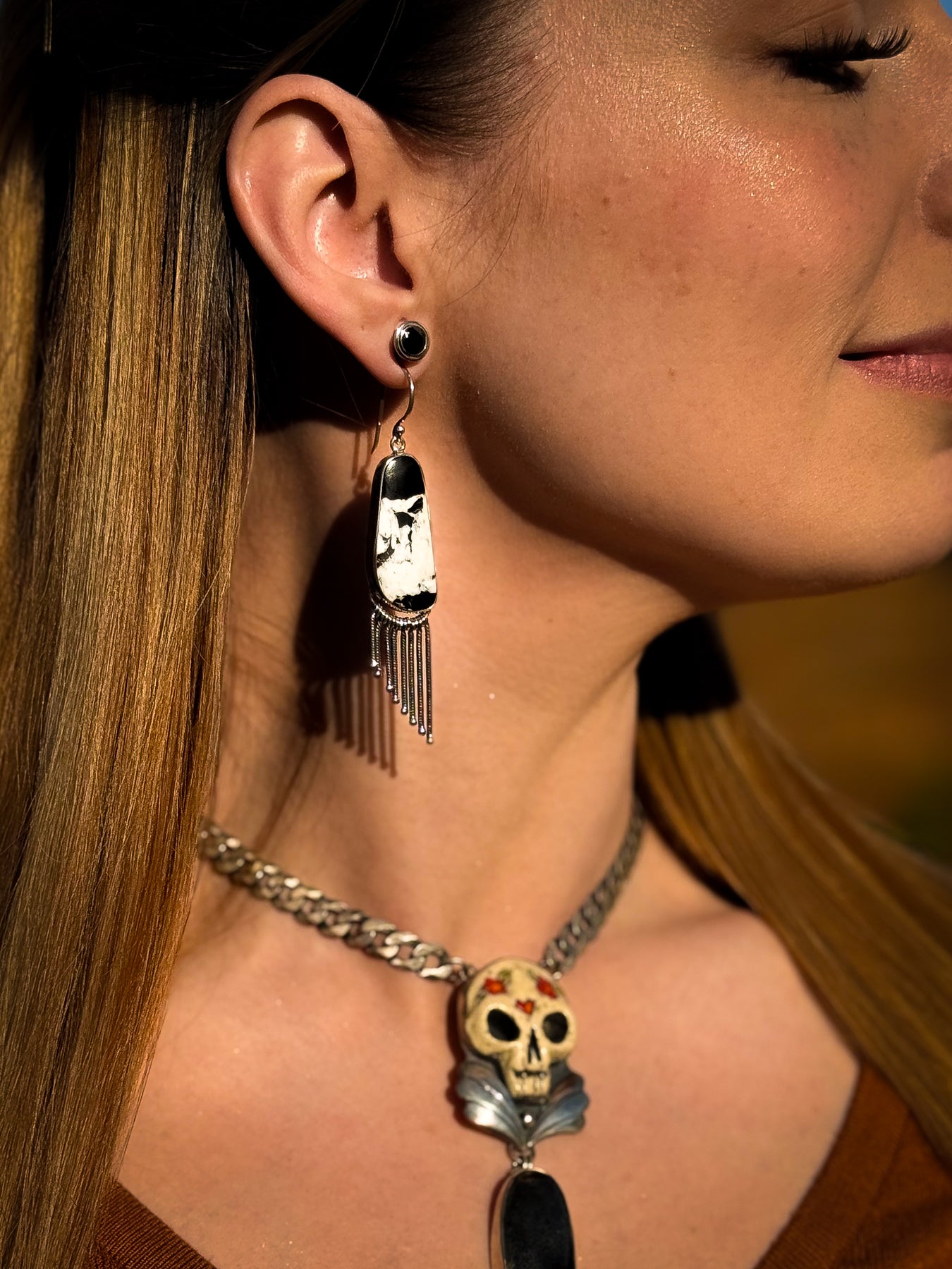 Delicate rope chain fringe cascades like rain in moonlight. The movement is hypnotic—catching light, creating shadows, drawing the eye without demanding attention. These earrings move with you, a gentle reminder that even in transition, you are whole.