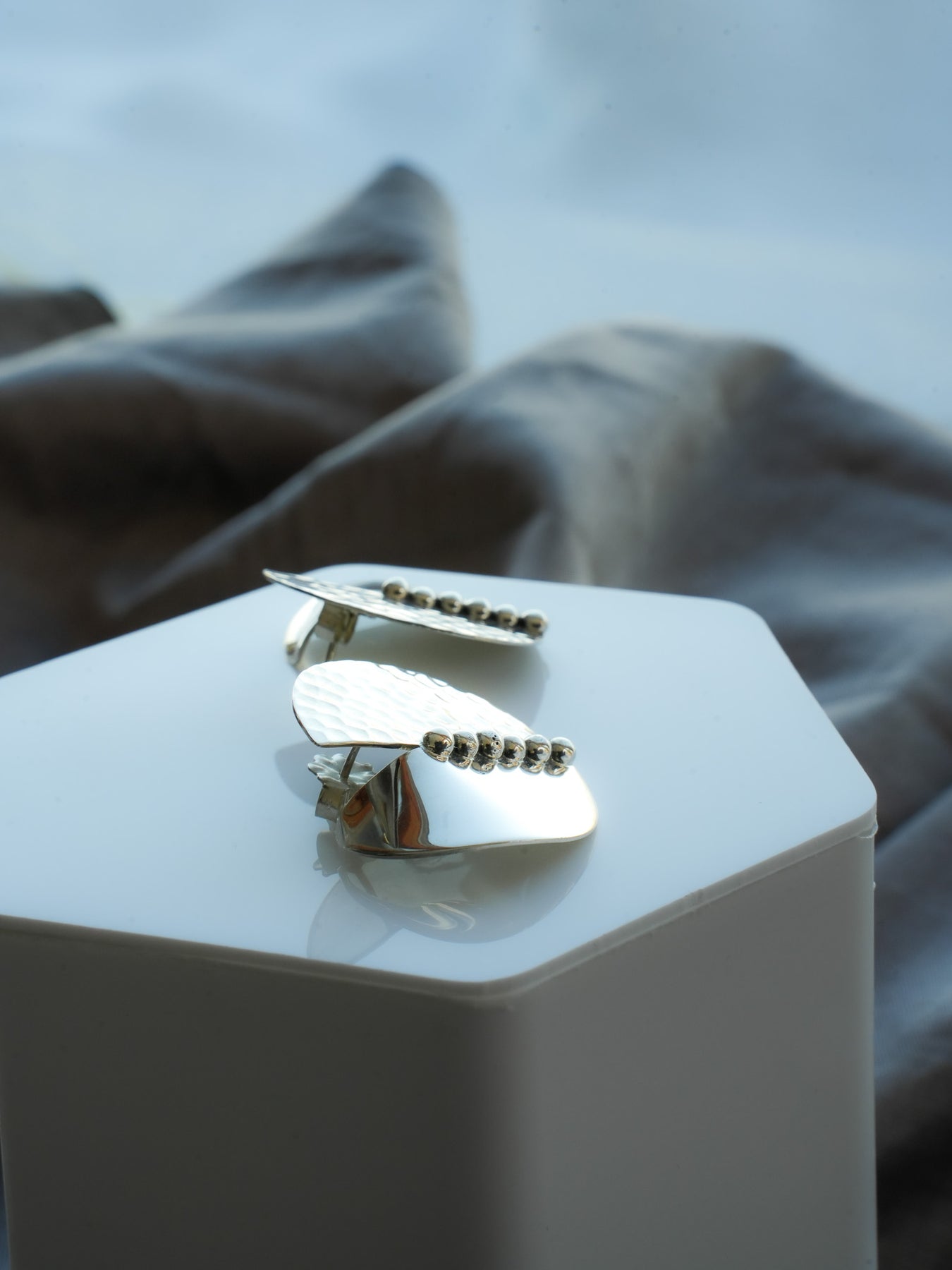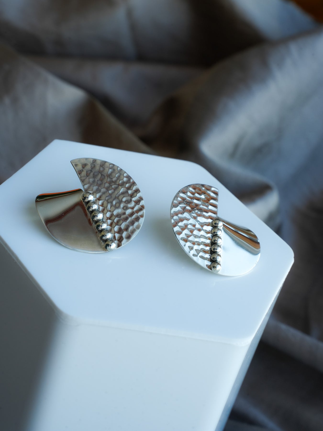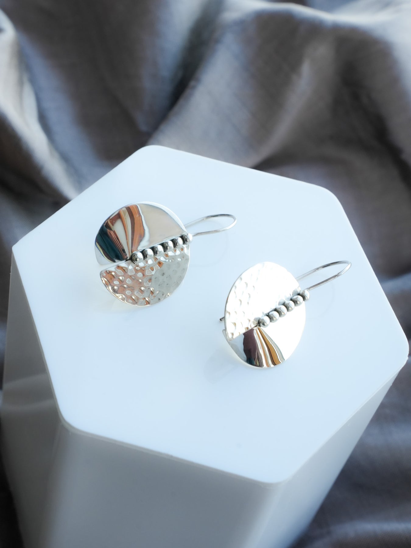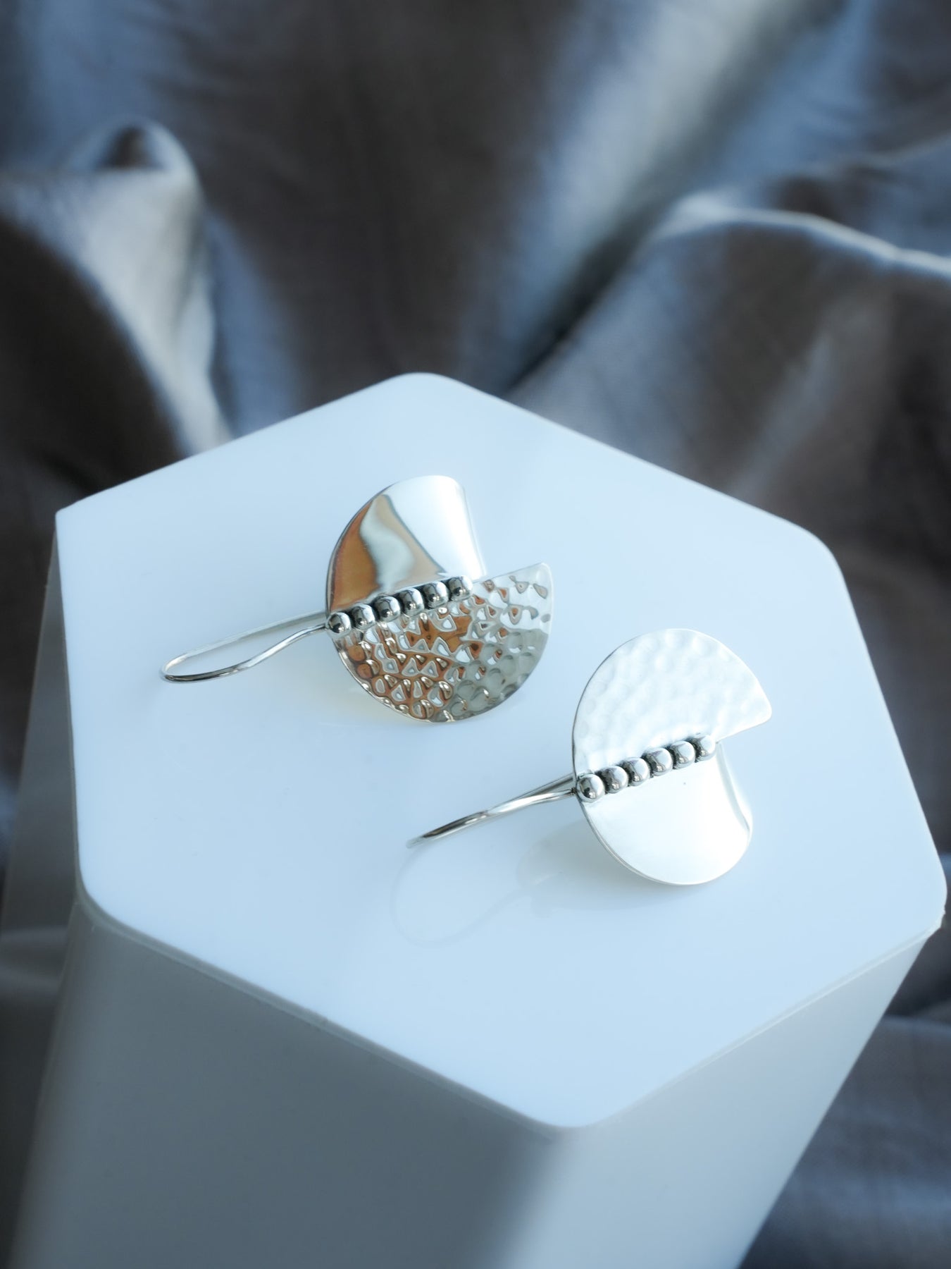 Masterfully handcrafted from premium .925 sterling silver, these commanding earrings feature distinctive round discs that evoke the sacred shields carried by mythical Valkyries as they traverse between worlds. The unique wave-like contours symbolize life's eternal ebb and flow—a reminder that challenges are navigated through graceful determination rather than rigid resistance. Each dimensional shield catches the light with subtle brilliance, creating a powerful presence that draws the eye and sparks conversation about the ancient wisdom embedded in Nordic lore.