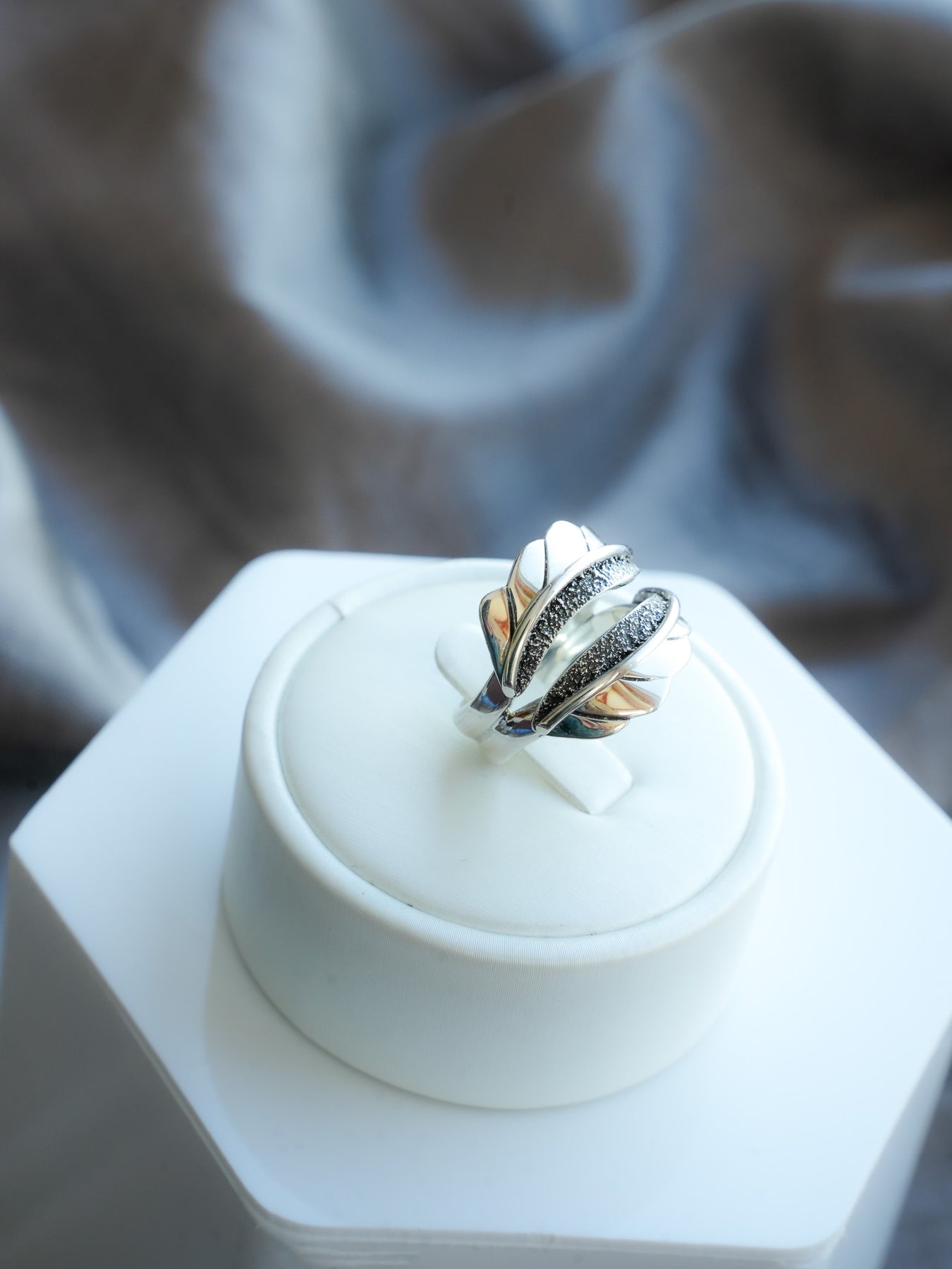 I saw this ring and knew I had to have it. Erin’s work has a tendency to draw me in. Her pieces are so unique. The contrast of this ring with the shiny silver leaves and the dust she uses from her other pieces is just amazing. Just what I needed to compliment the stone pieces she has done for me. Erin has a heart of gold or should I say silver. She is a true artist and an amazing designer of the jewelry she makes. So glad we met on the plane that day Erin.
