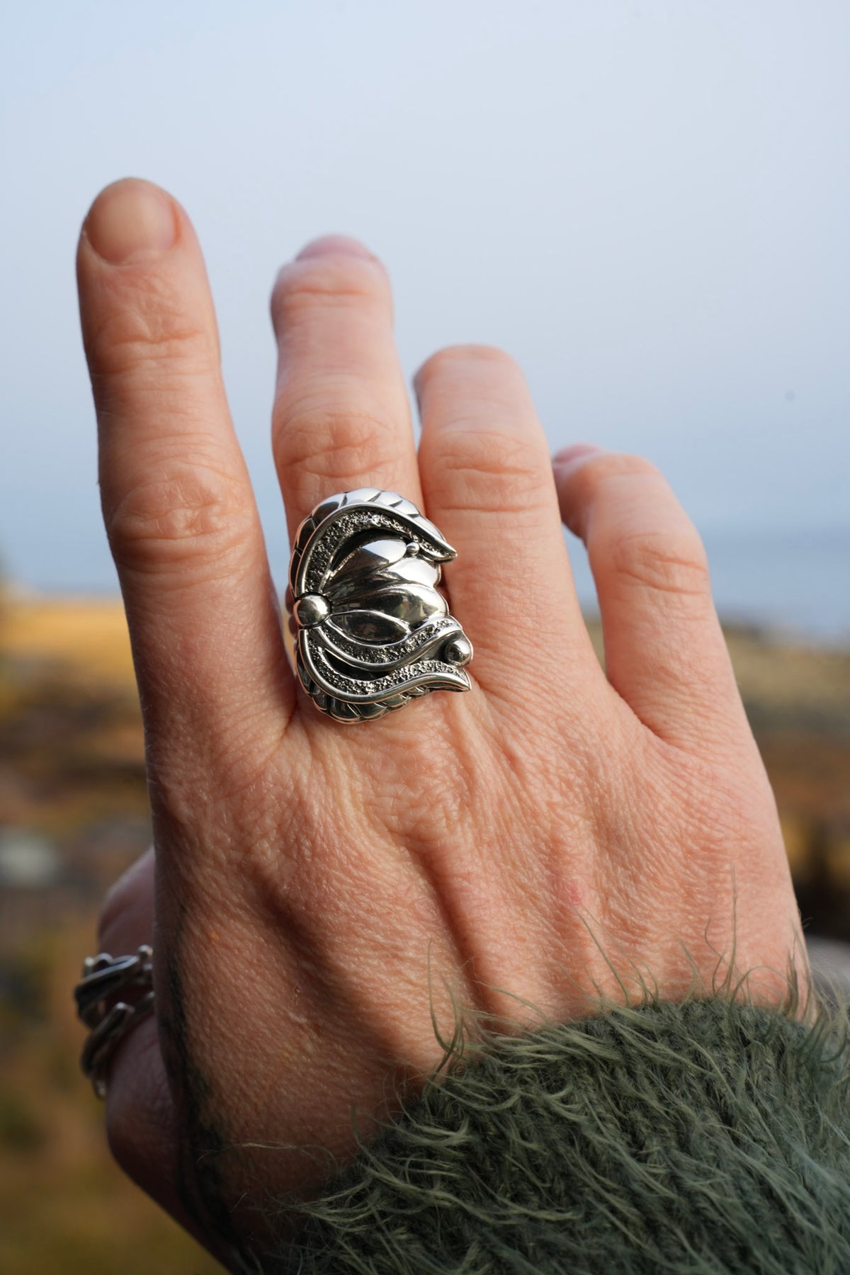 Handcrafted from premium 925 sterling silver, this statement piece transitions seamlessly from your morning ritual to an evening celebration. It's bold without being loud, substantial without being heavy. The kind of ring that makes you glance down mid-conversation and think, yes, this is precisely who I am.