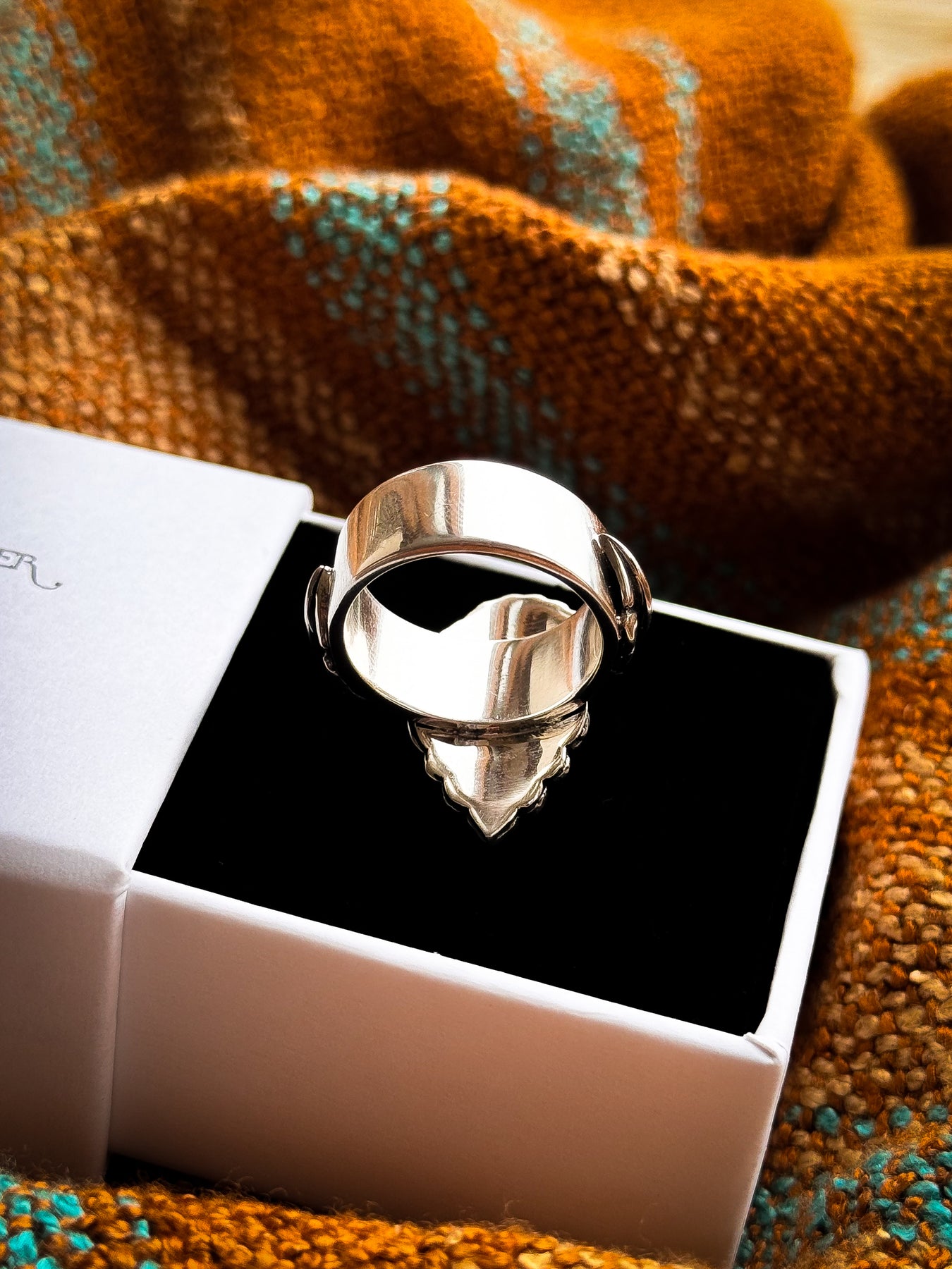 Measurements: Size 9 | Band width: 25mm at front, 8.7mm at back | Substantial transformational presence