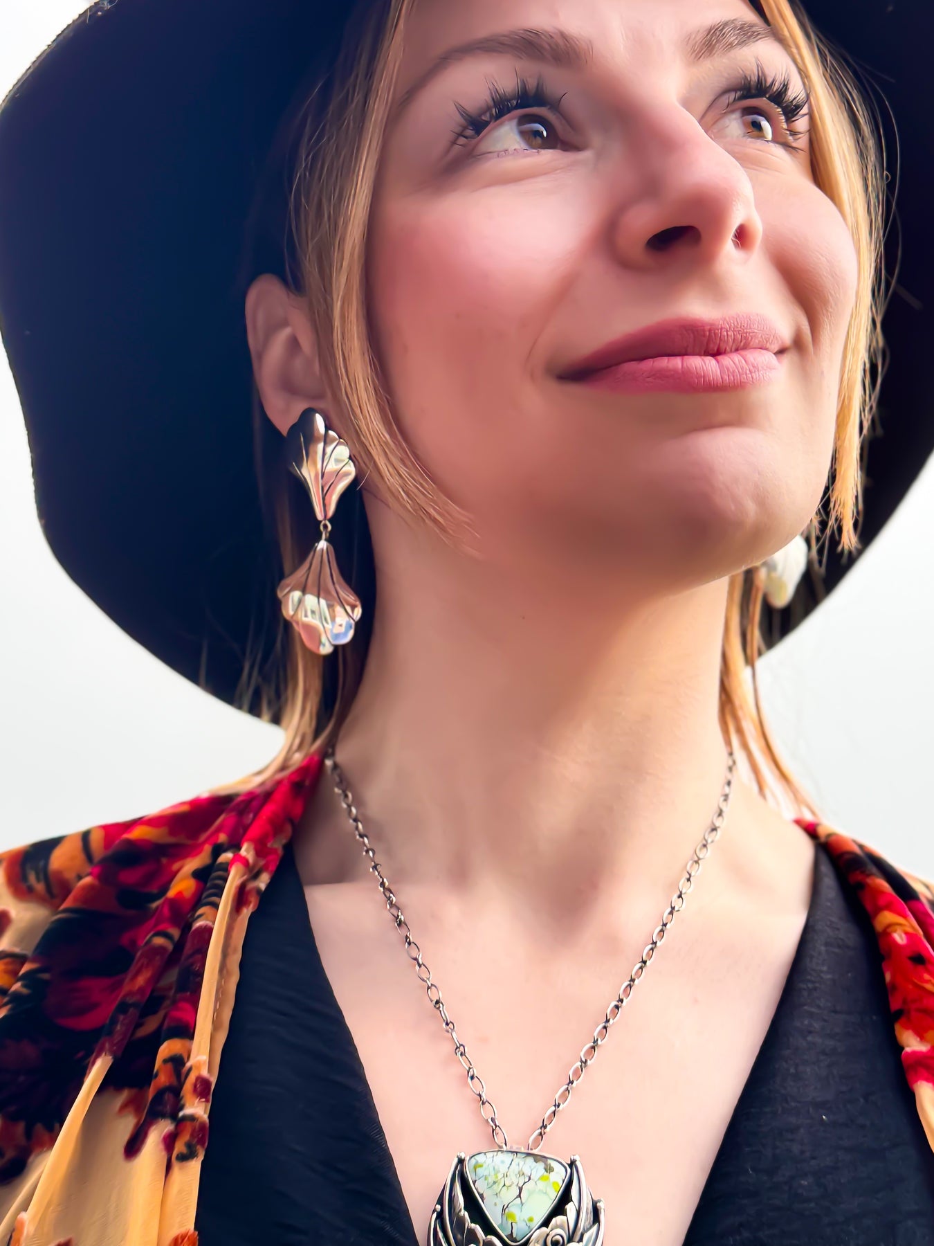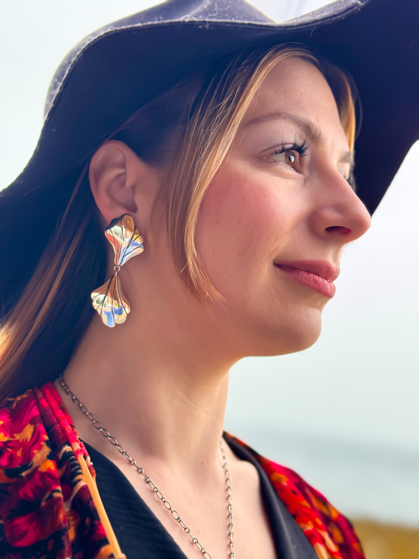 The mirrored design creates this beautiful dance of symmetry that draws eyes and starts conversations. Like her namesake, she embodies that protective energy that shields what matters most while radiating an inner fire that can't be dimmed. When you wear this pair, you'll notice how differently you move through the world - chin a little higher, smile a little brighter. For those who have hidden their light, ready to embrace their sacred transformation with wings spread wide.