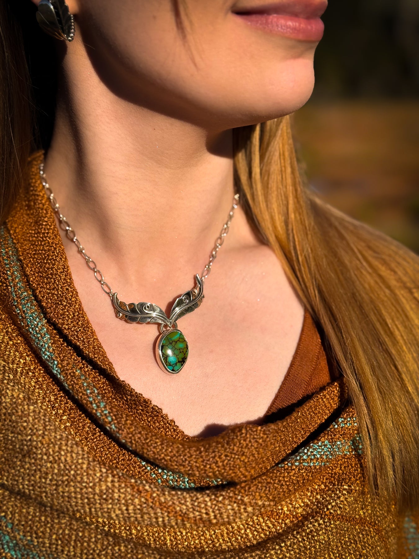 Discover the untamed beauty of this Natural Turquoise Matrix pendant, where azure blues merge with earthy browns, warm tans, and forest greens in a celebration of nature's perfect imperfection.